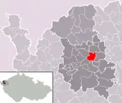 Se encuentra ubicada al norte de la región, cerca de la orilla del río Ohře —un afluente izquierdo del río Elba—, y a poca distancia al sur de la parte occidental de los montes Metálicos y de la frontera con Alemania.[1]