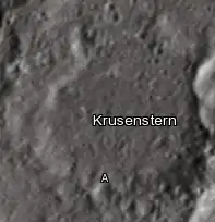 ![]() Localización de Krusenstern (cuadrante superior izquierdo de la imagen). Fotografía de la misión LRO. |