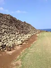 Posteriormente, la gente de las Islas de la Sociedad (como Tahití ) emigró a Hawái. Entre ellos estaba Pa'ao, quien trajo la religión de Polinesia y la perfeccionó como religión hawaiana, incluida la costumbre Luakini. Usó a Mo'okini Heiau como su lugar sagrado para Kū, el símbolo del hombre y dios de la guerra, y reconstruyó sus muros de piedra.