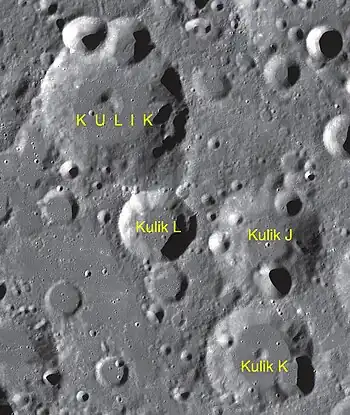 Por convención estos elementos son identificados en los mapas lunares poniendo la letra en el lado del punto medio del cráter que está más cercano a Kulik.