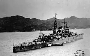 Durante el transcurso de la batalla del golfo de Leyte, el 25 de octubre de 1944, estando en acción frente a Samar fue cañoneado en su puente y torpedeado por el USS Johnston (DD-557) cuyo torpedo le arrancó su castillo de proa dejándolo inhabilitado para el combate. Su sobrecompartimentación y rápida actuación de la tripulación le salvó de hundirse y se retiró del área de combate a baja velocidad y en solitario hacía el mar de Sibuyan donde nuevamente fue bombardeado el 26 de octubre por aeronaves de la Task Force 38 con tres bombas de 227 kg que lo convirtieron en una ruina a flote, a pesar de todos los daños y a los tenaces esfuerzos de la tripulación logró con una sola caldera y a una velocidad de dos nudos llegar a Manila donde recibió reparaciones de emergencia.