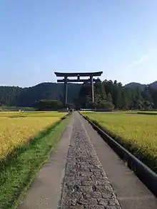 Sin embargo, la identidad exacta de la deidad principal a la que se honra en este santuario es desconocida, como ocurre a menudo en los santuarios sintoístas, aún en los más antiguos y prestigiosos. Está considerado como uno de los típicos santuarios dedicados a Amaterasu, simple e incluso algo austero, pero situado en un entorno natural de gran belleza, entre cedros y otros árboles centenarios.[2]