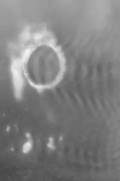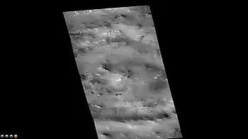 ![]() Cráter Kunowsky visto con la cámara CTX desde el Mars Reconnaissance Orbiter. |