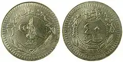 ![]() Moneda turca de 40 paras (1 kurush) 1336 del Calendario musulmán | |||||