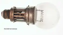 Desarrolladas por el físico y químico alemán Walther Nernst en 1897 en la Universidad de Goettingen, estas lámparas eran aproximadamente dos veces más eficientes que las lámparas de filamento de carbono y emitían una luz más "natural" (más similar al espectro a la luz del día). Las lámparas fueron comercializadas con bastante éxito por un tiempo, aunque poco a poco fueron superadas por la bombilla incandescente de filamento de tungsteno aún más eficientes. Una desventaja del diseño de Nernst era que el vástago de cerámica no era eléctricamente conductor a temperatura ambiente por lo que las lámparas necesitaban un filamento calentador separado para calentar la cerámica lo suficiente para comenzar a conducir electricidad por sí misma.