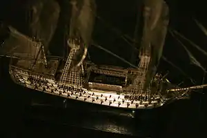 110 cañones: • 30 cañones de a 36 lb • 32 cañones a 24 lb • 30 cañones a 12 lb • 8 cañones a 8 lb 12 carronadas de a 36 lb | |