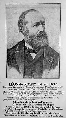 - Esta obra contiene una traducción derivada de «Léon de Rosny» de Wikipedia en francés, publicada por sus editores bajo la Licencia de documentación libre de GNU y la Licencia Creative Commons Atribución-CompartirIgual 4.0 Internacional.