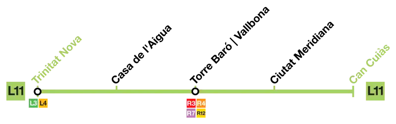 La Línea 11 del Metro de Barcelona es una línea de metro ligero soterrado perteneciente a la red de Metro de Barcelona que da servicio a cinco barrios de las poblaciones de Barcelona y Moncada y Reixach. La línea es de conducción automática (es la segunda línea de metro en España, después de la L9/L10, que funciona de forma totalmente automatizada), construida a comienzos de la década de 2000 como prolongación de la línea 4 a la estación de Trinitat Nova.[2]