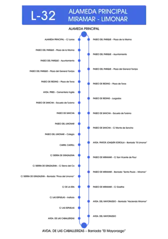 La línea 32 de la EMT de Málaga conecta el centro de la ciudad con la barriada de El Limonar. Su recorrido también da servicio a barriadas anejas a esta, como Miramar, Santa Paula Miramar, El Mayorazgo o Pinos del Limonar.