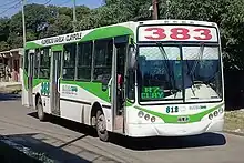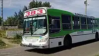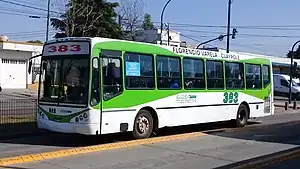 ![]() Una unidad de la Línea 383 (N° 822) Recorriendo el Metrobús de Florencio Varela. | ||