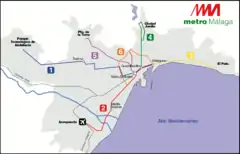 ![]() Mapa del Metro de Málaga con la línea 3 | ||