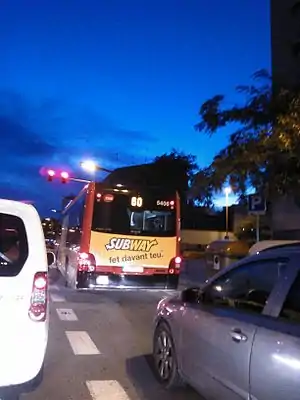 ![]() Autobús de la línea 60 dirección Z. Universitaria en el Pº de Santa Coloma. | ||