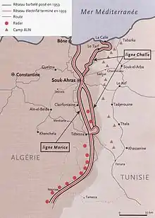 La línea Morice fue construida a lo largo de la frontera entre Argelia y Túnez, de una longitud de unos 460 km, y fue construida con el fin de impedir el accesso a los combatientes del Frente de Liberación Nacional argelino a la entonces colonia francesa. Esta se convirtió en la primera línea de defensa francesa durante la batalla de las Fronteras.