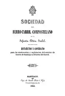 Siguiendo una regla habitual en los primeros ferrocarriles peninsulares, la llegada del ferrocarril a Galicia se planteó buscando una doble rentabilidad: transportar pasajeros pero sobre todo mercancías. Por ello el primer trayecto que salió adelante fue el que pretendía unir Santiago de Compostela, Cornes para ser más exacto y Carril (Villagarcía de Arosa) siguiendo la costa atlántica. Las estaciones de toda la línea eran 8; partiendo de Cornes,Casal,Osebe,Esclavitud,Padron,Cesures,Catoira y Carril. La concesión se materializó el 7 de abril de 1861, para ser ratificada un año después y concretada en 1863 con la creación de la sociedad del Ferrocarril Compostelano de la Infanta Doña Isabel que posteriormente fue comprada por inversores ingleses dando lugar a la The West Galicia Railway Company Limited que presidió John Trulock,[3] abuelo del escritor Camilo José Cela. Aunque el trayecto apenas superaba los 40 kilómetros, la compañía tardó diez años en concluir la obra, poniéndola en servicio el 15 de septiembre de 1873.[4]