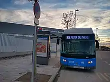 El Servicio Especial (S.E.) codificado como SE709 de la EMT de Madrid une la estación de Feria de Madrid con el hospital Isabel Zendal.
