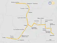 La línea T4 es la antigua línea de Coquetiers que unía las grandes líneas de la Compañía de Ferrocarriles del Norte y la Compañía de Ferrocarriles del Este entre las estaciones de Aulnay-sous-Bois y Bondy.