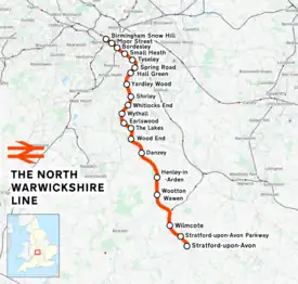 La Línea del Norte de Warwickshire (también conocida como la Línea de Shakespeare)[1] está ubicada en la Región de las Tierras Medias Occidentales del Reino Unido, y sirve de soporte a un servicio de trenes de cercanías. Discurre entre Birmingham y Stratford-upon-Avon (Warwickshire), aunque hasta 1976 llegaba hasta Cheltenham como parte de la ruta del Great Western Railway desde Birmingham a Bristol.