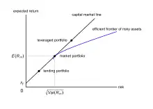 La CML surge de la combinación de la cartera de mercado y el activo libre de riesgo. Todos los puntos situados en la CML tienen mayores retornos en relación con el riesgo que cualquier otro punto representativo de una cartera situado en la frontera eficiente, con excepción de la cartera de mercado, el punto en el que la CML es tangente a la frontera eficiente. Desde el punto de vista de la CML, la cartera de mercado es una cartera compuesta completamente por activos de riesgo. Cualquier punto situado por encima o a la izquierda de la CML son irrealizables, mientras que aquellos puntos situados por debajo o a la derecha de la CML son alcanzables pero ineficientes.