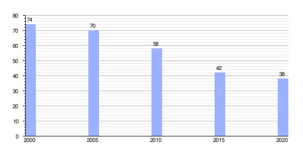 | Gráfica de evolución demográfica de Lúa (aldea) entre 2000 y 2020 |