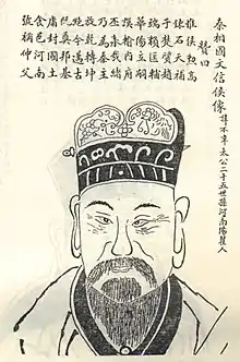 Lü Buwei (chino tradicional: 呂不韋, chino simplificado: 吕不韦, pinyin: Lǚ Bùwéi, Wade-Giles: Lü Pu-wei) (siglo III a. C.) fue primer ministro del estado de Qin, el reino que unificó el territorio de China bajo el gobierno del primer emperador Qin Shi Huang. El personaje de Lü Buwei es conocido, como la mayoría de sus contemporáneos, por los anales históricos tardíos, el Shiji (las « Memorias históricas ») de Sima Qian, el Zhan Guo Ce Intrigas de los Reinos Comatientes »), y el Shuoyuan (說苑, "Jardín de las historias"). Lü Buwei es designado allí como padre del primer emperador, cuya madre habría sido su antigua concubina. Esta filiación, mencionada en anales tardíos y parciales, tiene por objeto evidente depreciar al primer emperador, haciéndole hijo bastardo de un comerciante y una cortesana. Por esta razón, es a menudo cuestionada[1] y parece poco probable, sin que sea posible aportar una prueba concluyente de la verdadera paternidad de Qin Shi Huangdi.