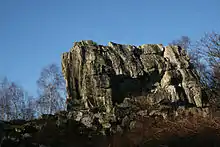 - Teufelsfels (569.0 m), al suroeste de Womrather Höhe;