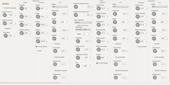Ventana de zyn, una versión de ZynAddSubFX en formato plugin lv2