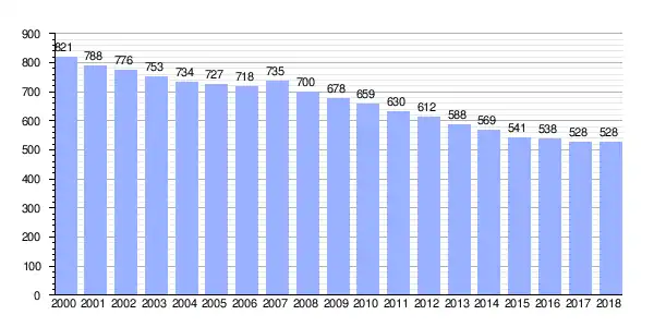 | Gráfica de evolución demográfica de La Baña entre 2000 y 2018 |