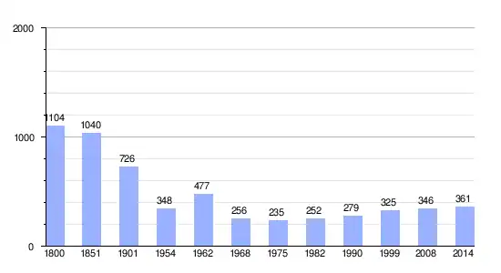 Gráfica de evolución demográfica de La Bréole entre 1800 y 2014