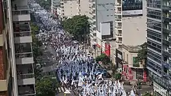 En 2015, el kirchnerismo logró una victoria histórica en la elección al centro de estudiantes de la Facultad de Ciencias Sociales de la Universidad de Buenos Aires (UBA). La lista 21 compuesta por La Cámpora, la UES (MUNAP), Nuevo Encuentro, CUPP, Movimiento Universitario Evita y Peronismo Militante, entre otros, se impuso en Sociales con el 47,4% de los votos emitidos.[55] En 2018 en las elecciones en los centros de estudiantes de la UBA, La Cámpora volvería a ganar el centro de la Facultad de Ciencias Sociales en la Lista 15 (La Cámpora, Nuevo Encuentro y La Mella) con el 37,30%.[56] y a fin de año se integraría en la vicepresidencia a la Lista 1 que ganaría la Federación Universitaria de Buenos Aires, en alianza con el Partido Obrero, La Mella y Nuevo Encuentro.[57]