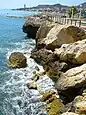 - Paseo Marítimo El Cantal:[4] Su nombre es paseo marítimo Blas infante,[5] conocido por ser el autor del himno de Andalucía, o por sus ideas como acabar con el caciquismo, promover una reforma agraria para crear una clase media de campesinos propietarios. Este paseo Comunica la Cala con el paseo marítimo de Rincón de la Victoria, caracterizado por los llamados “túneles”, los cuales antiguamente pasaba el tren que fue construido en 1908 para albergar la vía del tren que iba de Málaga a Vélez-Málaga. Estuvieron en funcionamiento hasta el año 1968. Después lo habilitaron como carretera y finalmente lo convirtieron en peatonal. De los cuales se puede disfrutar de espectaculares vistas del paisaje marino, en el que se encuentra un Santuario de la Virgen del Carmen. Donde los fieles la arropan con flores y velas. tiene espectaculares vistas del paisaje marino, en él se encuentra un Santuario de la Virgen del Carmen. Dispone de máquinas para realizar ejercicio, destinada a mayores y a niños. Cuenta con un espigón para los aficionados a la pesca.Sin duda es el mejor lugar para practicar todo tipo de deportes como running, futbol, voleibol, surf, bodyboard, windsurf … Ya que cuenta con espacios amplios y dispone de la playa.