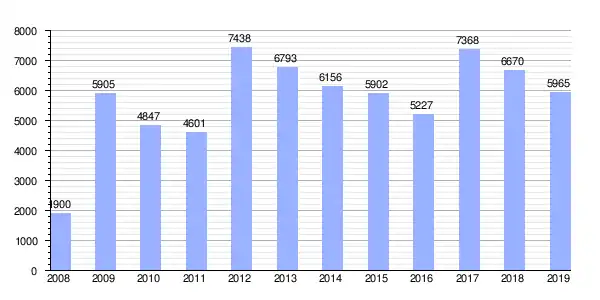 | Gráfica de evolución demográfica de La Carlota[4] entre 1842 y 2021 |