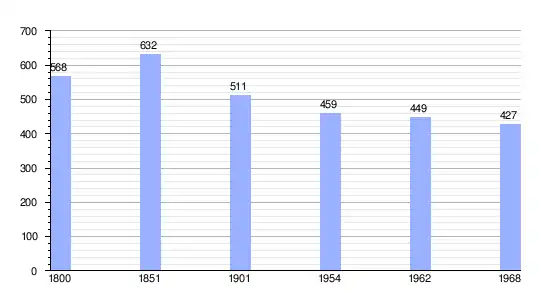 | Gráfica de evolución demográfica de La Charrière entre 1800 y 1968 |