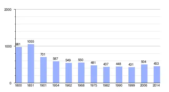 Los datos demográficos contemplados en este gráfico de la comuna de La Croix-Avranchin[4] se han cogido de 1800 a 1999 de la página francesa EHESS/Cassini, y los demás datos de la página del INSEE.[5]