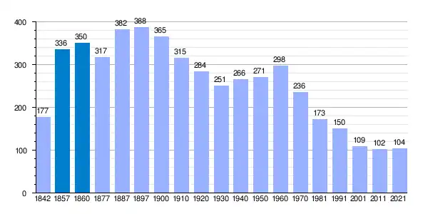 | Gráfica de evolución demográfica de La Cueva de Roa[11] entre 1842 y 2021 |