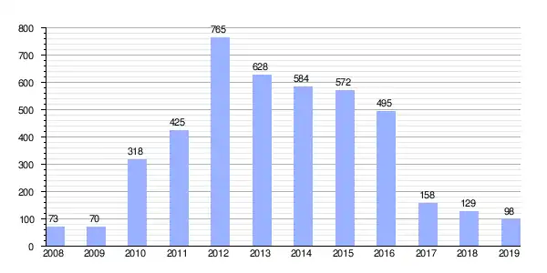 | Gráfica de evolución de Deuda viva del Ayuntamiento de Cuevas del Becerro entre 2008 y 2019 |