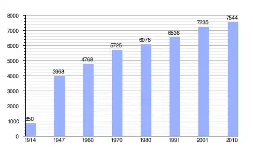 | Gráfica de evolución demográfica de La Cumbre entre 1914 y 2010 |