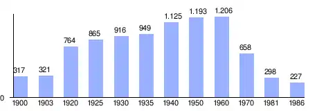 | Evolución demográfica de La Encina entre 1900 y 1986 |