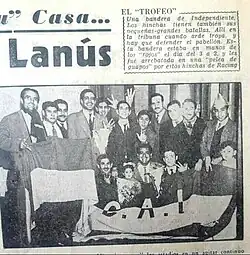 En 1958 se patentó la fundación de la barra brava por un grupo organizado dentro de la hinchada de Racing.[9] Sus miembros eran socios apasionados por el club. Algunos de ellos fueron Chacarita, el Gallego Títolo, Ángel Zaza Cupasolo y Salvador el Cebolla Bellusci, quienes recibieron distinciones por parte de la Revista Racing.[10] Sin embargo, por aquellos años esta agrupación se identificaba con el nombre de «la Barra de la Bandera».[11]
