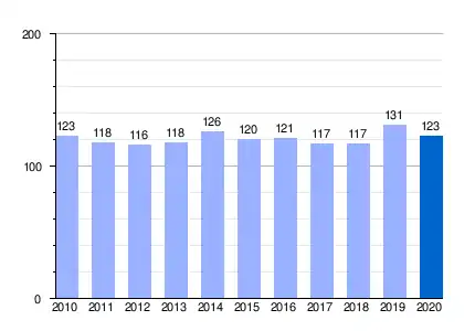 | Gráfica de evolución demográfica de La Huertezuela entre 2010 y 2020 |