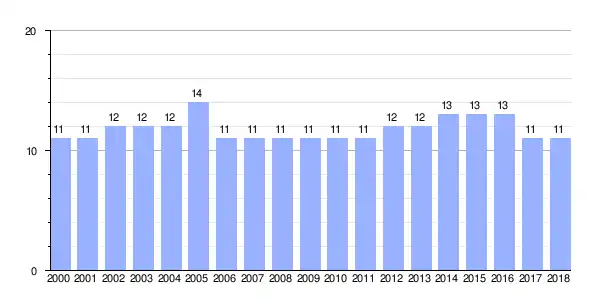 | Gráfica de evolución demográfica de La Iglesia entre 2000 y 2018 |