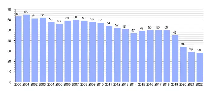 | Gráfica de evolución demográfica de La Iglesia entre 2000 y 2022 |