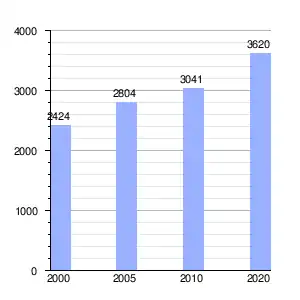 Cuenta con 3620 habitantes lo que representa un incremento promedio de 1.8% anual en el período 2010-2020 sobre la base de los 3041 habitantes registrados en el censo anterior. Ocupa una superficie de 1.895 km², lo que determina al año 2020 una densidad de 1911 hab/km².[7]