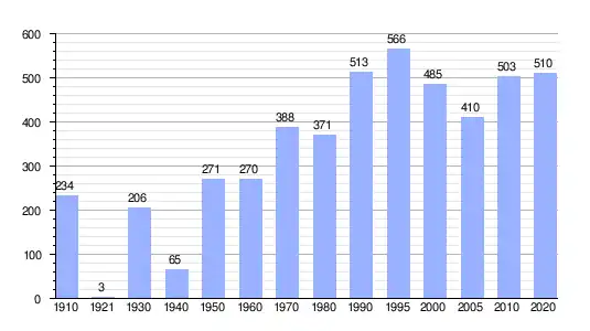 | Gráfica de evolución demográfica de La Lagunita entre 1910 y 2020 |