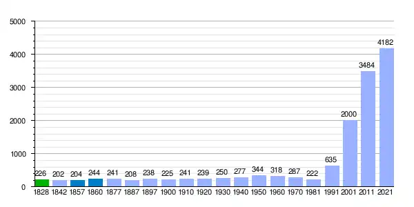 | Gráfica de evolución demográfica de La Lastrilla[6] entre 1828 y 2021 |