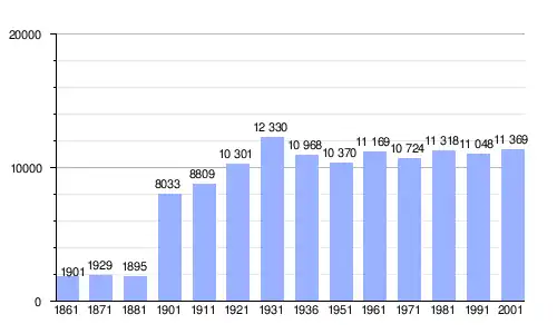 Gráfica de evolución demográfica de La Maddalena entre 1861 y 2001