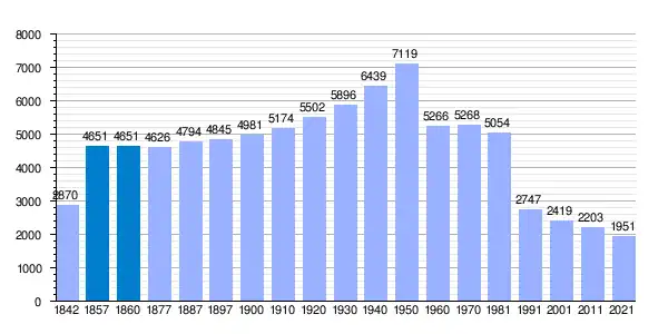 Hacia mediados del siglo XIX, el municipio tenía contabilizada una población de 2870 habitantes.[5] Aparece descrito en el undécimo volumen del Diccionario geográfico-estadístico-histórico de España y sus posesiones de Ultramar de Pascual Madoz con las siguientes palabras:[5]