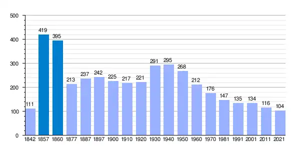 | Gráfica de evolución demográfica de La Molsosa[3] entre 1842 y 2021 |