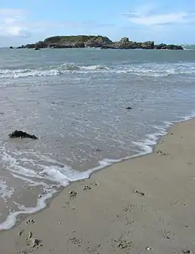Está situada cerca de la orilla del mar y es accesible en marea baja, pero los visitantes de la isla viajan cuidado para no quedar aislados por la marea. La isla tiene una superficie cubierta de hierba y con la presencia de barro rodeado de rocas. En los últimos tiempos se han hecho esfuerzos para preservar la isla con la construcción de muros.
