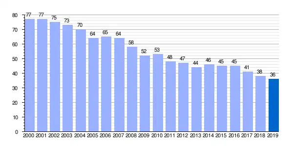 | Gráfica de evolución demográfica de La Muela[1] entre 2000 y 2019 |