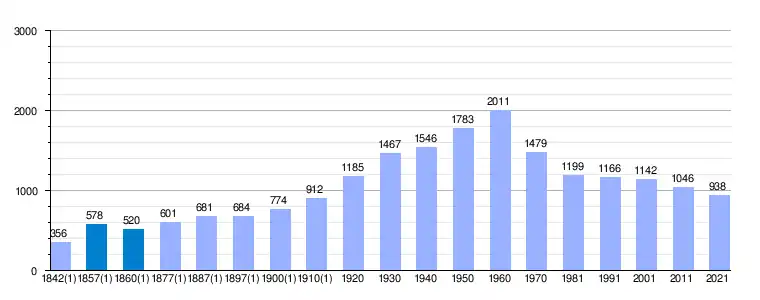 | Gráfica de evolución demográfica de La Nava de Santiago[4] entre 1842(1) y 2021 |